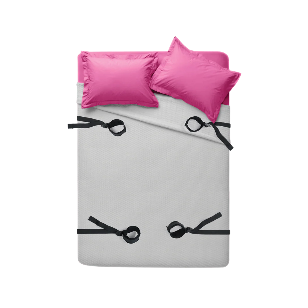 This adjustable restraint system features four cuffs for wrists and ankles and is designed to fit beneath any size mattress, offering countless possibilities for spicy exploration.