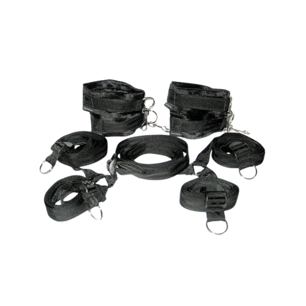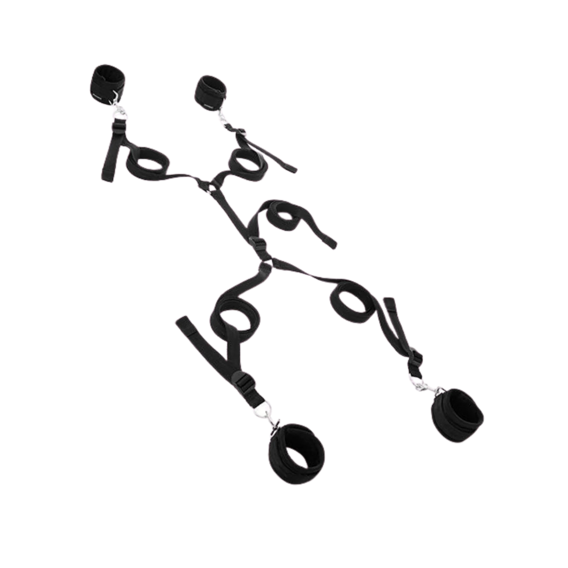 The original (yes, we invented it) Under The Bed Restraint System® is easy to set up, in fact, sets up in minutes. 4 adjustable cuffs (fits 4 inch to 12 inch wrists), four restraint straps secured to one connector strap that fits securely under your mattress. Restrains your partners' arms and legs from the sides or bottom of the bed. The restraint strap quickly fits beneath any mattress with no hooks and adjusts to the size you desire. Easy set-up on any mattress. Portable and great for a surprise getaway. Fits any size mattress and travels well Use at home or on your vacations 4 adjustable cuffs (fits 4-12" wrists), four restraint straps secured to one connector strap that fits securely under your mattress Easy set-up on any mattress Portable and great for a surprise getaway