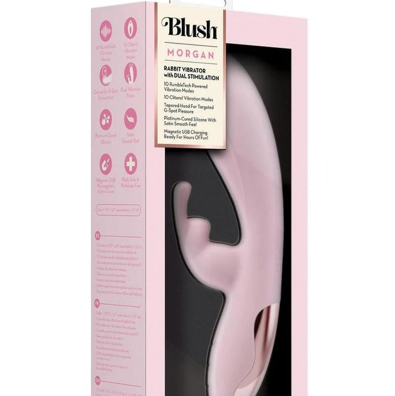 Morgan is ready to Give It To You Strong! This mighty rabbit vibrator is thoughtfully designed with dual vibration points, offering a world of extraordinary sensations for your G-Spot & clitoris. The smooth & supple shaft was designed for your satisfaction, shaped with a tapered head that glides gracefully into place, bringing you bundles of intimate pleasure. Powered by RumboTech™ technology, this rabbit features 10 strong shaft vibrations modes, providing so many ways to customize your play to match your desires. Sensual rabbit ears effortlessly snuggle your clitoris, adding 10 additional vibrations with a fun blend of speeds & patterns. Crafted with premium platinum-cured silicone, Morgan feels wonderfully satin smooth against your skin and magnetic USB charging powers this product for hours of fun. IPX6 splashproof. Embrace and own your pleasure with Morgan by your side. You’re gonna love the feeling Morgan brings to you!