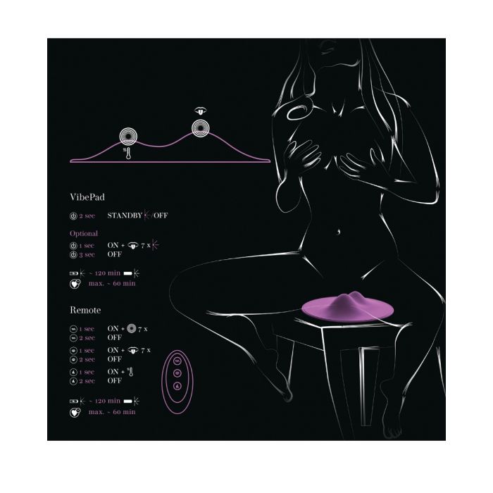 The vibepad is very easy-to-use and intuitive: it can be placed on a flat surface (e.g. on a chair) and can then be enjoyed hands-free. It can also be used to stimulate the testicles and perineum.
