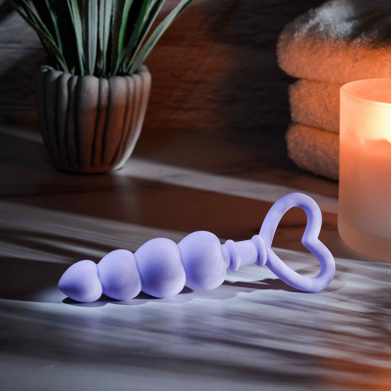 Unlock the key to backdoor pleasure with these heart shaped silicone beads that graduate in size so that you can find the girth that works for you! The flexible shaft moves with your body an the heart shaped handle cradles your fingers as you ease the beads in with plenty of lubricant. Enjoy all of the sensations that this extraordinary erogenous zone has to offer with a cute heart shaped handle.