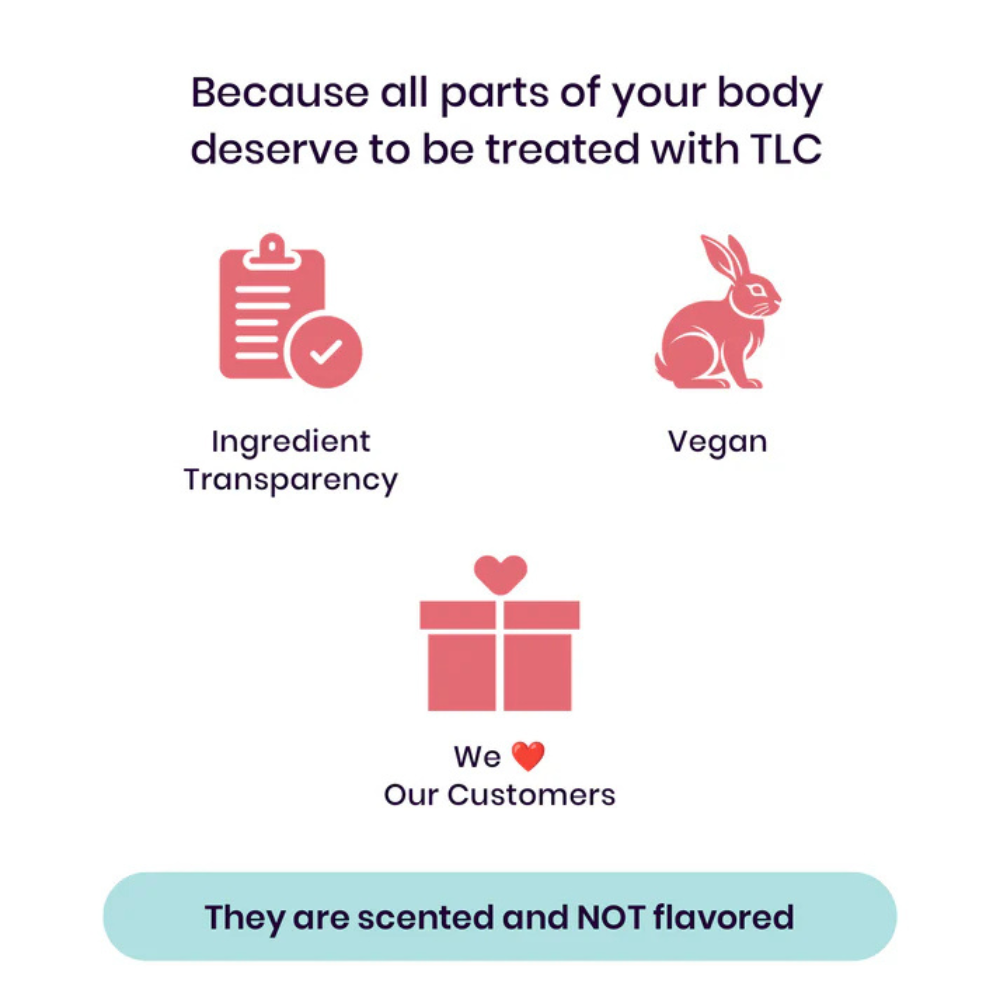 These scented, unflavored Wipes are a treat for your most sensitive skin. Made with fewer ingredients than most baby wipes, these pH-balanced, water-based wipes are infused with a light, fun scent and soothing botanical extracts. They’re gentle, effective, and designed to leave you feeling clean, confident, and kissably fresh. 30 wipes per pack.