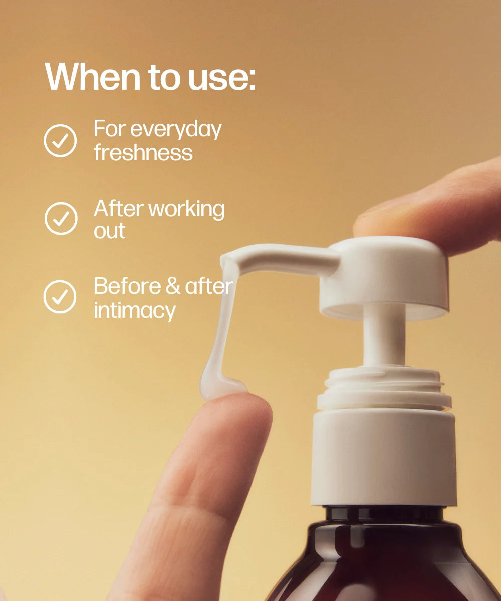 A gentle, fragrance free cleanser that rejuvenates and nourishes skin, rinses residue-free and helps support the pH of your vulva.