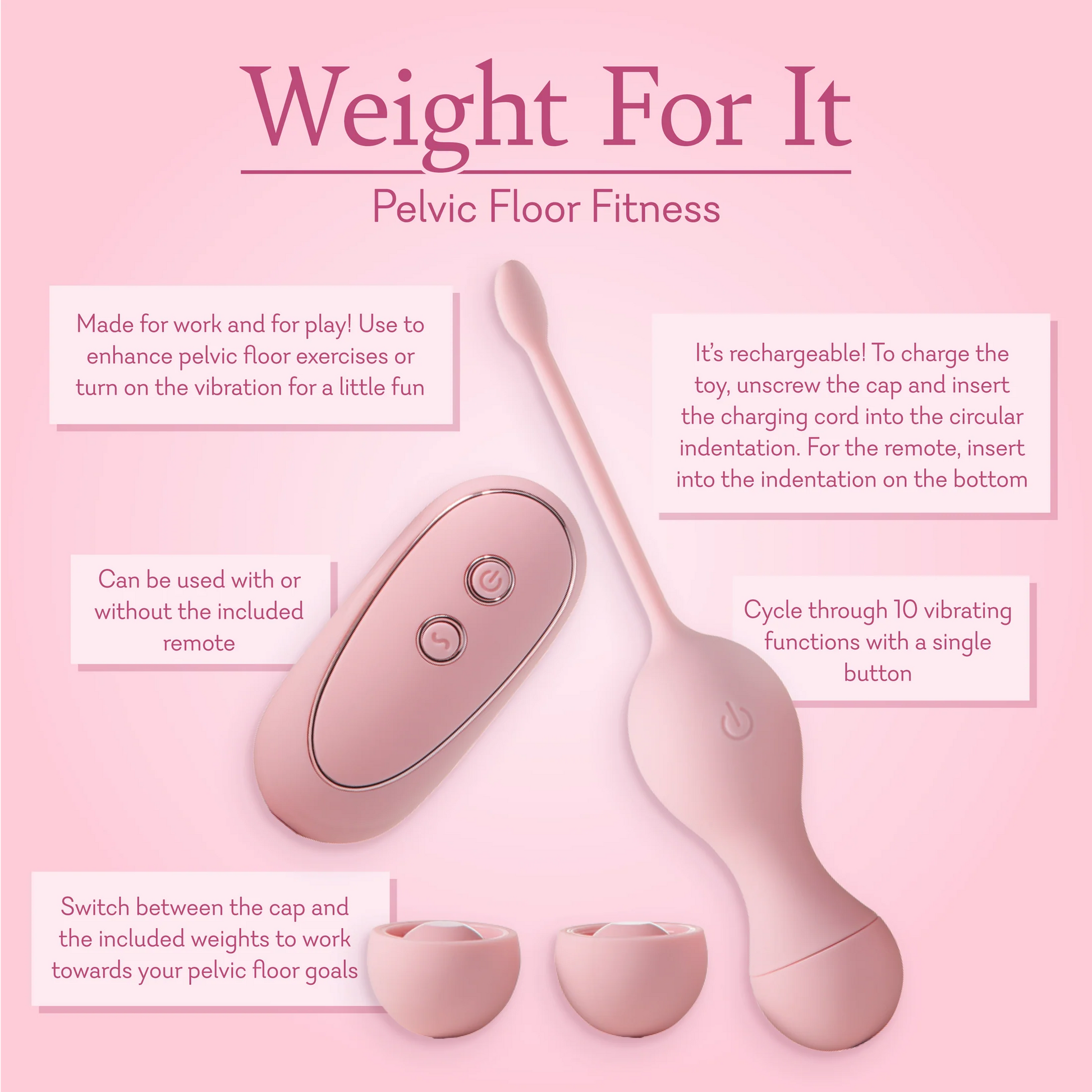 Just like you exercise to maintain the health of your body, it’s important to exercise to maintain your vaginal health, as well. If you’ve had vaginal births or experience some bladder leakage, strengthening your pelvic floor muscles can help to improve your vaginal fitness – and even make orgasms better. That’s where Weight For It can help. Weight For It is a Kegel training device to help you improve your pelvic floor. It includes 3 interchangeable caps, each of a different weight, so you can modify your workout to fit your needs. It also includes a daily routine, so you’ll have everything you need to get on your way to improving your vaginal fitness. And the best part: it’s simple and easy to fit into your day. But Weight For It isn’t just for work – it’s also for play! Featuring 3 vibrating speeds and 7 pulsing patterns, Weight For It doubles as a clitoral or vaginal vibrator. After all, what better way to end a workout than with a little treat?