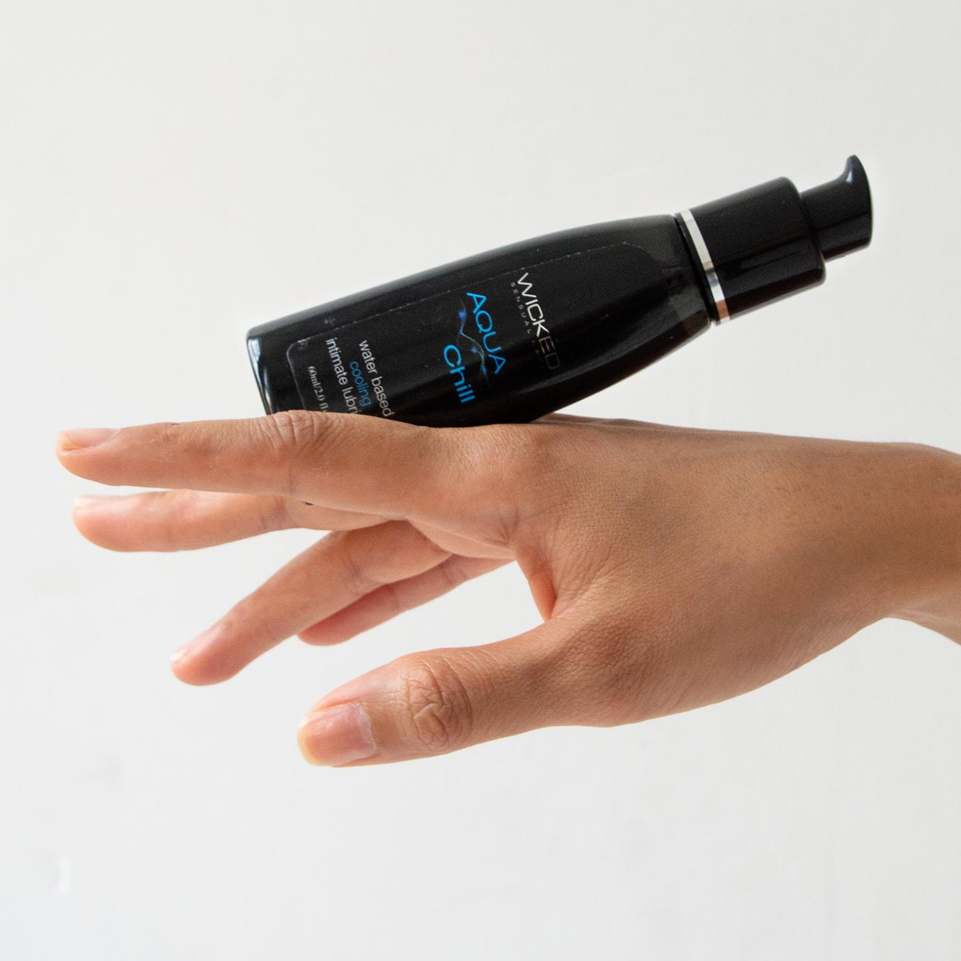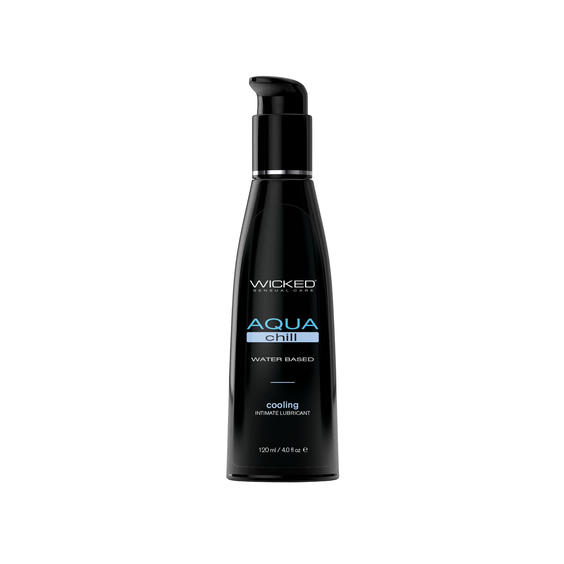 Experience the ultimate cooling sensation from Wicked Aqua Chill personal lubricant. This carefully crafted water-based lubricant is designed to keep you cool, even as playtime gets hot. Natural peppermint leaf, ginger root, and menthol blend together to create an exciting tingle that is chilling, thrilling, and satisfying!