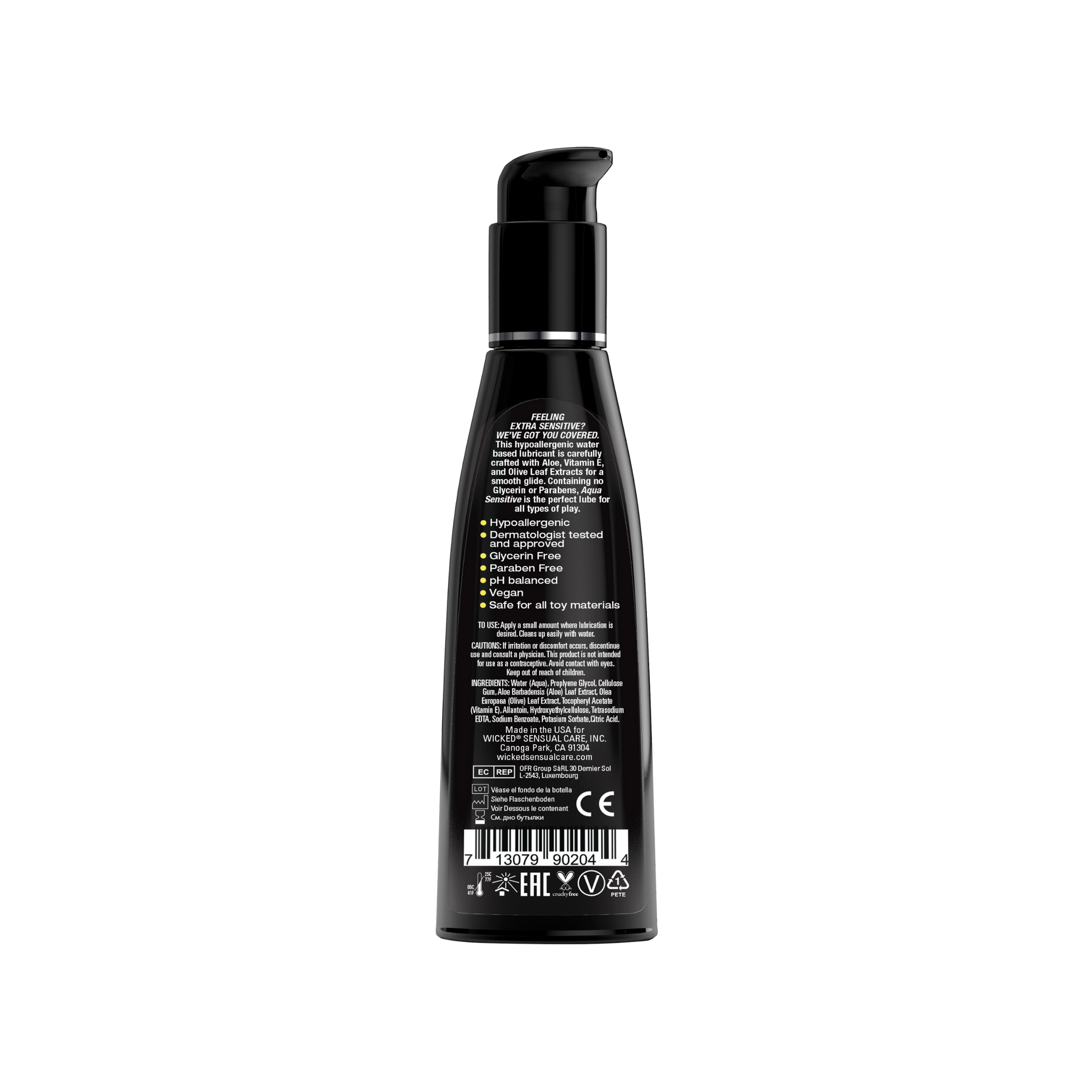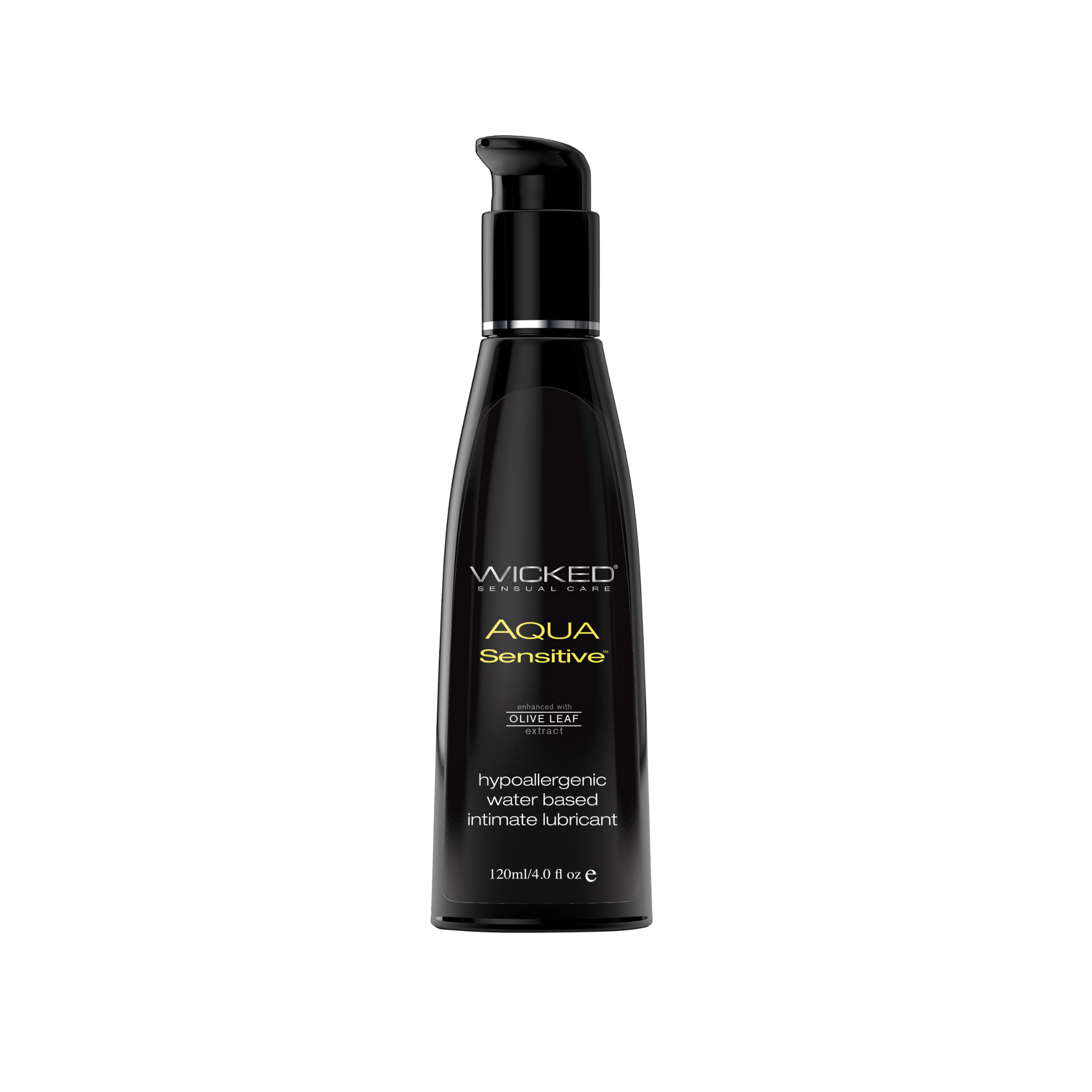Indulge yourself and your most delicate areas with this incredibly smooth and satiny, hypoallergenic personal lubricant. The luxurious Glycerin and Paraben-free formula is specifically crafted for sensitive skin to heighten sensation and arouse satisfaction. Enhanced with skin nurturing Aloe and Olive leaf extract as well as Vitamin E, Wicked Aqua Sensitive will caress your body and provide new levels of pleasure.