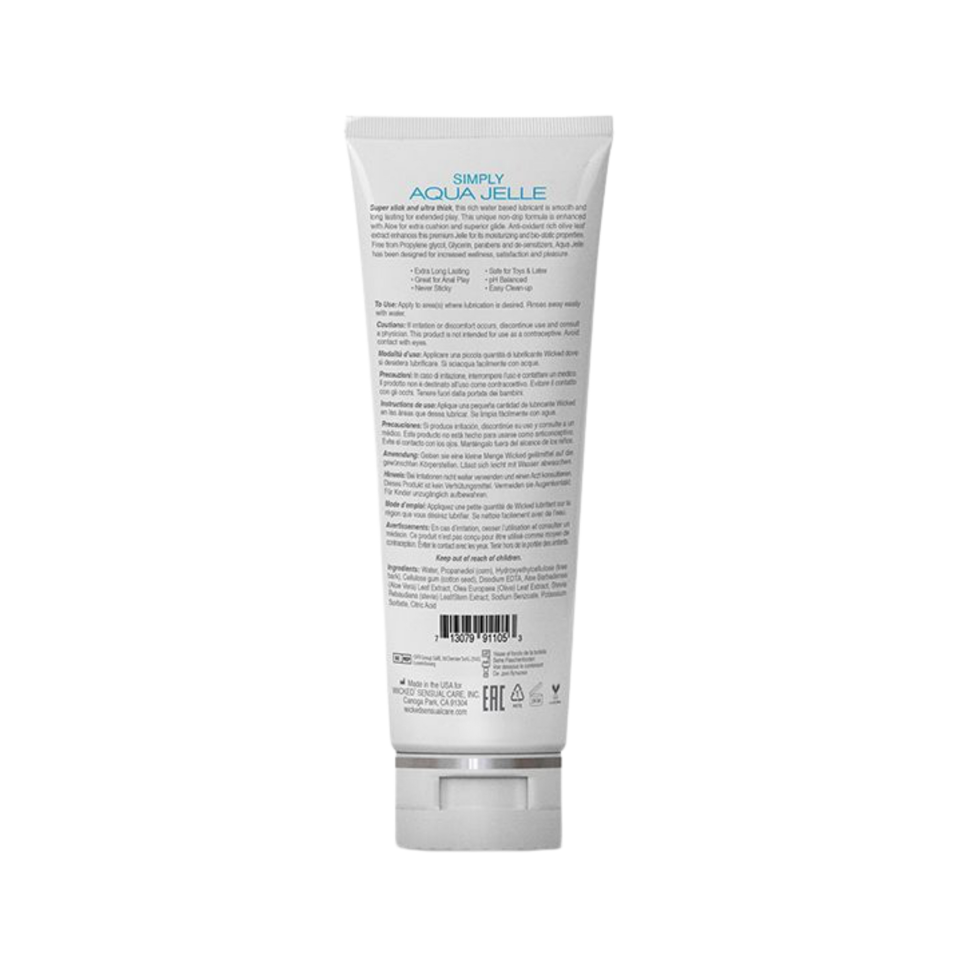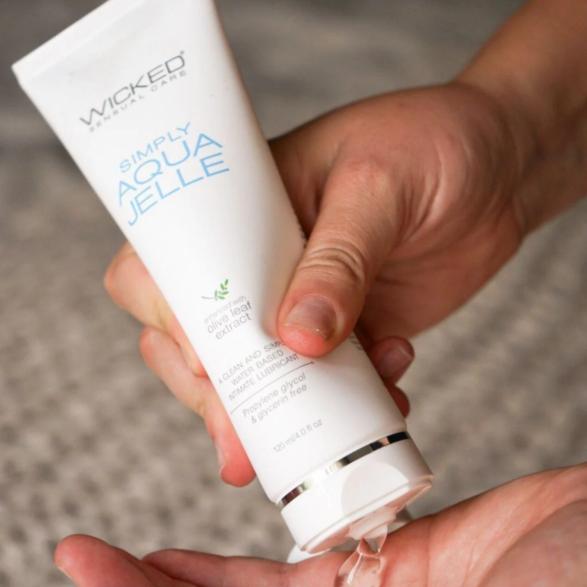 Heighten sensation and increase pleasure with simply Aqua Jelle, a clean, water based lubricant that's slick, sensual, and never sticky. Free of glycerin, propylene glycol, and parabens, simply™Aqua Jelle is also vegan, cruelty-free, and enhanced with our signature antioxidant-rich Olive Leaf Extract for its moisturizing and biostatic properties.